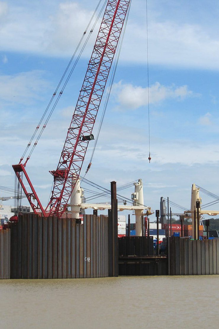 When your construction operations take place in or near the water, a cofferdam is a simple solution. Cofferdams are watertight structures designed to facilitate construction projects in areas which are normally submerged. Sheet piles are driven into soil or to rock, using equipment on land or on a barge. A bracing system is installed to resist lateral loads, and a dewatering system is used to remove the water in order to allow the construction to proceed.