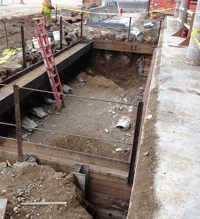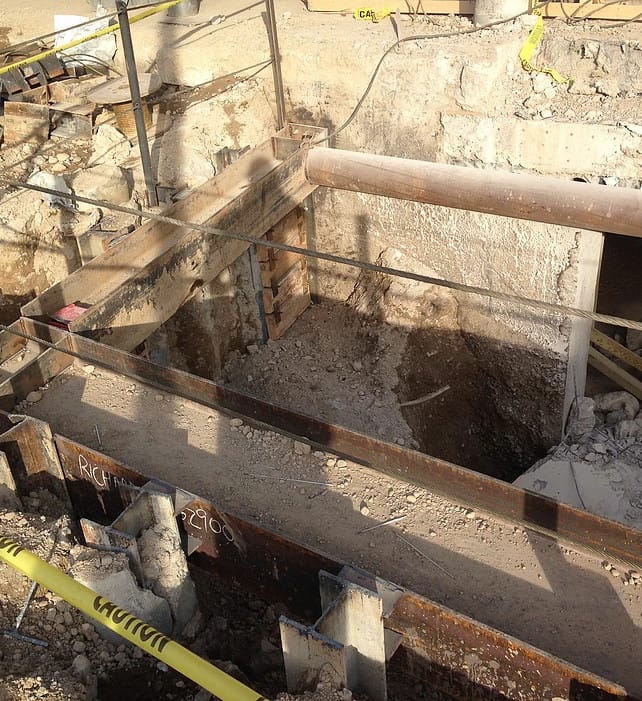 Installation of 9,200 Sq. Ft. of temporary earth retention with 41 tieback anchors, and 79 tangent piles @ 16" in diameter
