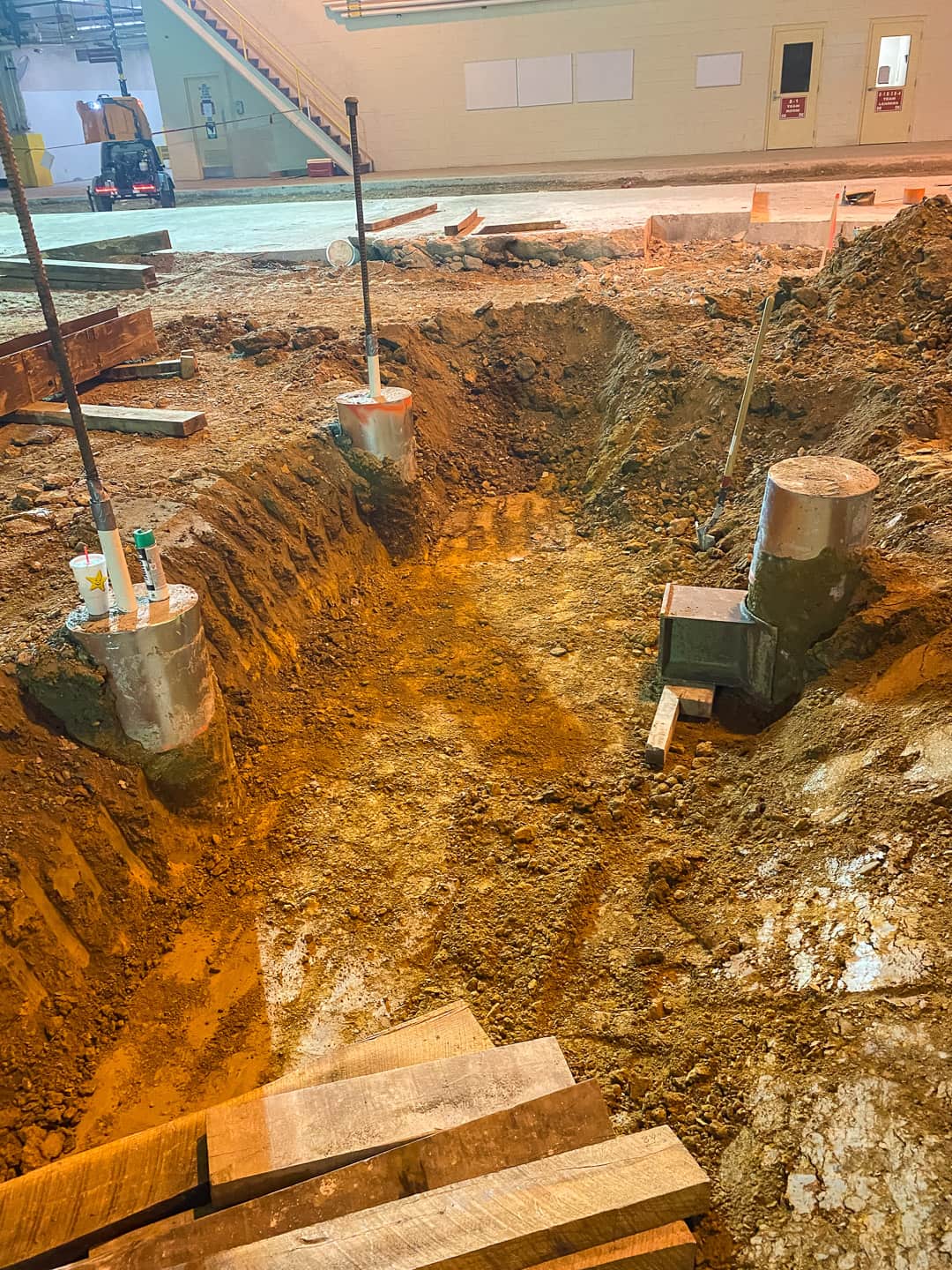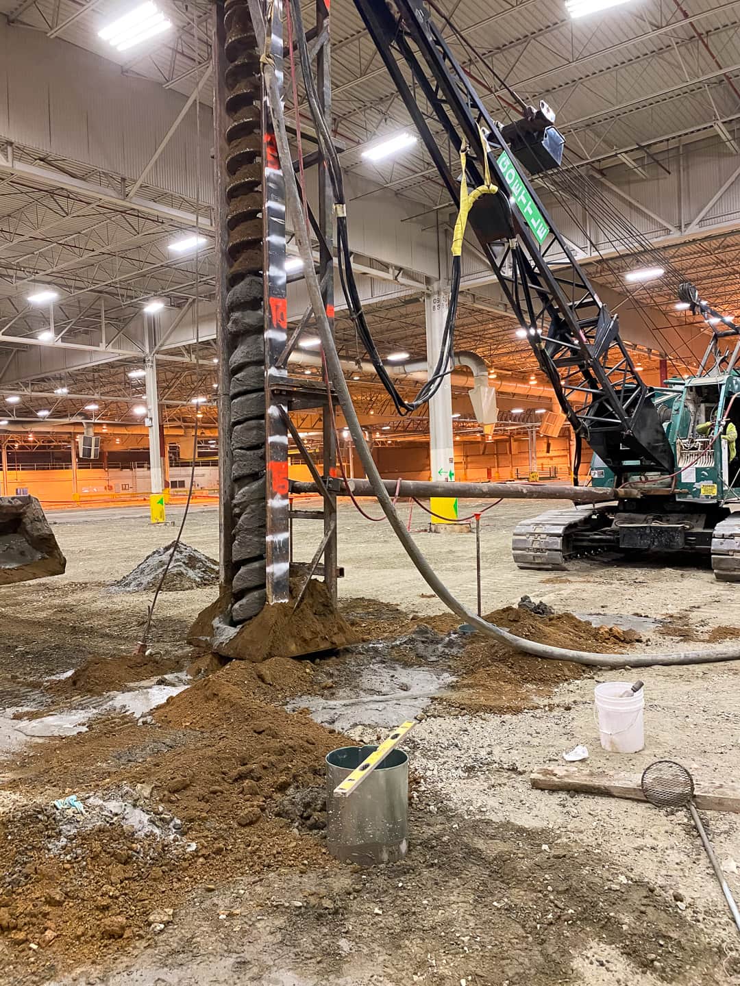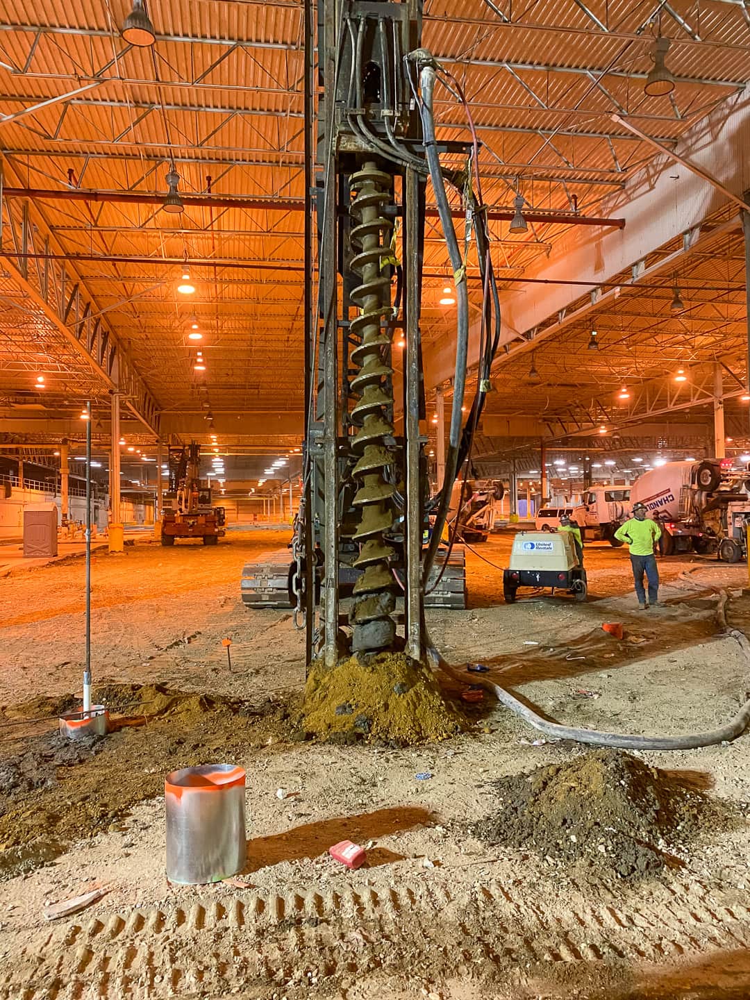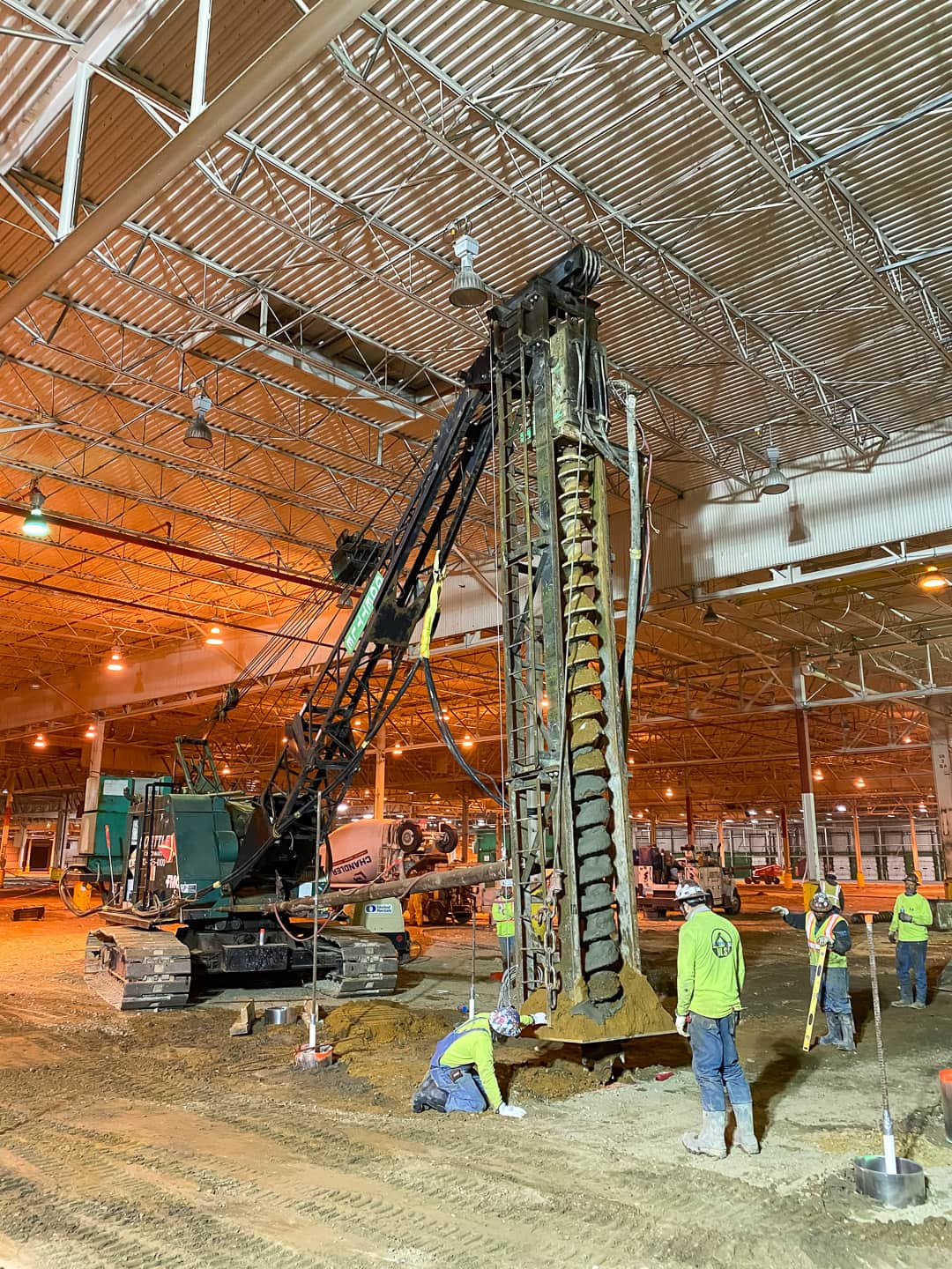 Design-build deep foundations inside existing warehouse with 28 feet of headroom.